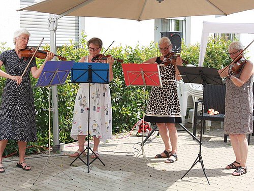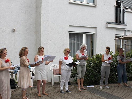 Mit schwungvollen Melodien begeisterte letzte Woche der Chor vom Staatstheater Darmstadt und ein privates Streicherquartett die Bewohnerinnen und Bewohner des Louise Dittmar Haus.